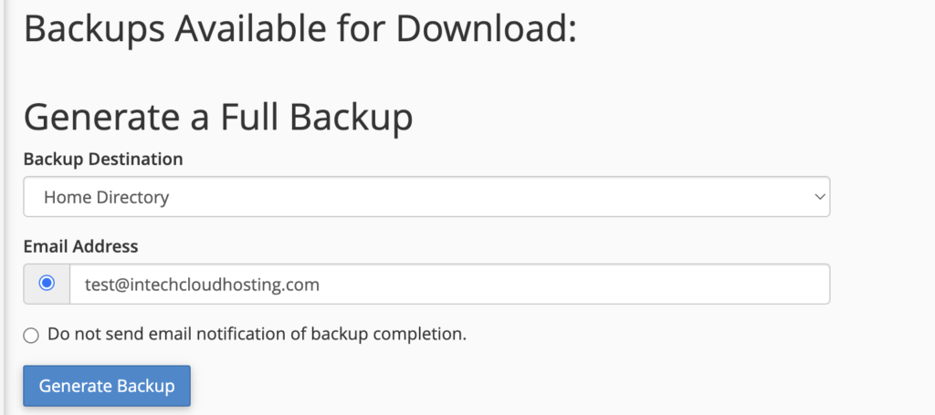 Once you clicked that, a notification window stating the backup is in progress appears. cPanel will also inform you about the backup’s status in your specified email address.