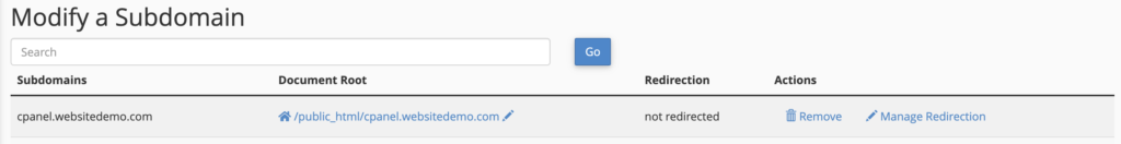 Once the domain added, you should see it in the Modify Addon Domain list. Here’s the description for that section: