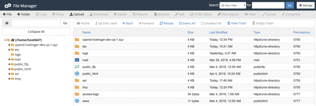 cPanel’s File Manager is the tool you need to do basic file management. In addition to uploading and extracting files, you can also create files and folders, assign permissions, etc.