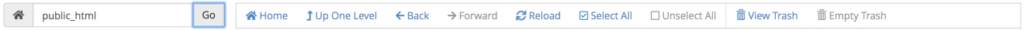 - Up One Level — goes up one level from your current place. For example, when you’re on cgi-bin folder and click this, it’ll bring you back to the public_html folder, which is a higher level than the cgi-bin folder