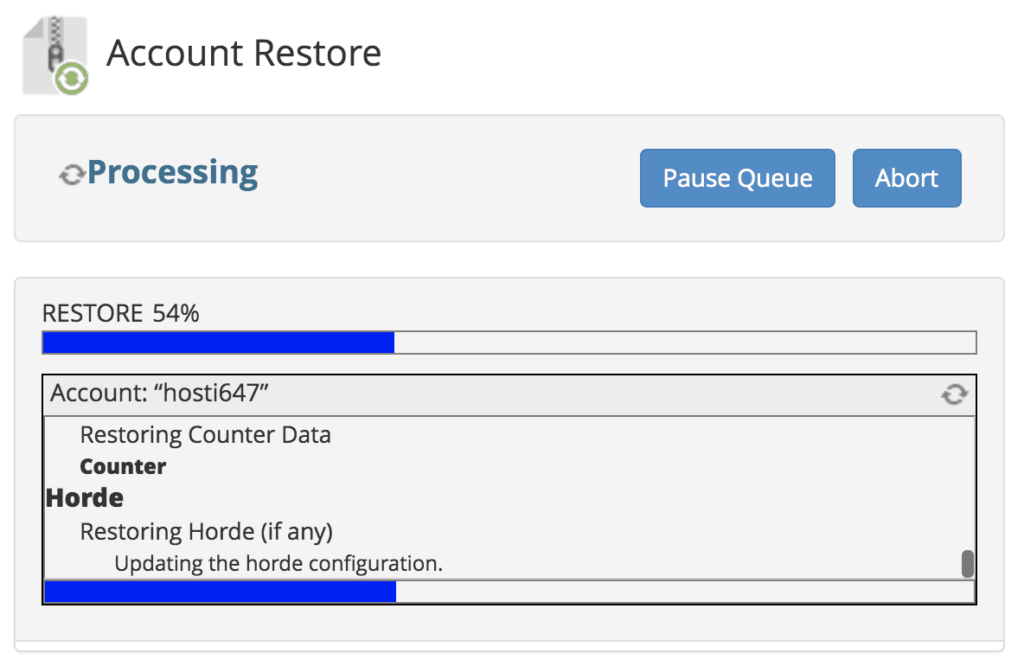 Please be aware that the backup generation and transfer can take some time, as it depends on your account’s size. When your data is fully transferred, we’re going to restore the backup on your new VPS.
