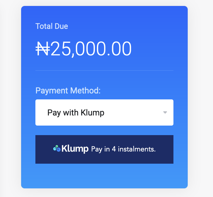So, just like you have been selecting other payment gateways like Rave, or Paystack when you are about to checkout, you can now select Klump which allows you to pay in up to 4 instalments.